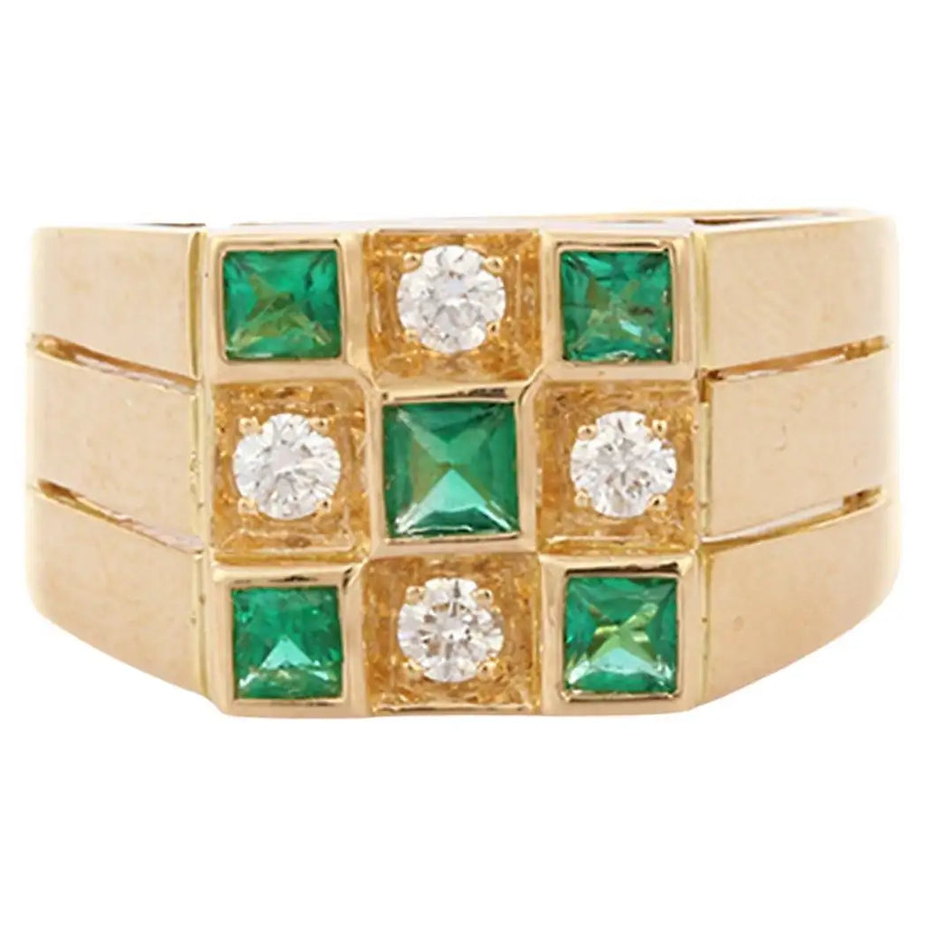 Square cut emerald and diamond men ring in 18K Gold which perfectly goes with your personality and also helps you to improve your creativity. This is a great, wedding or christmas gift for anyone on your list.