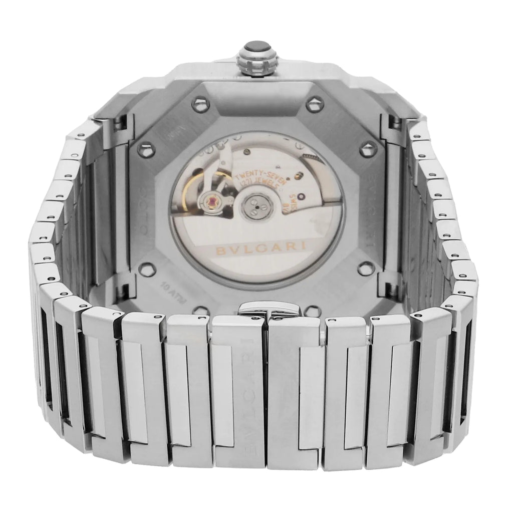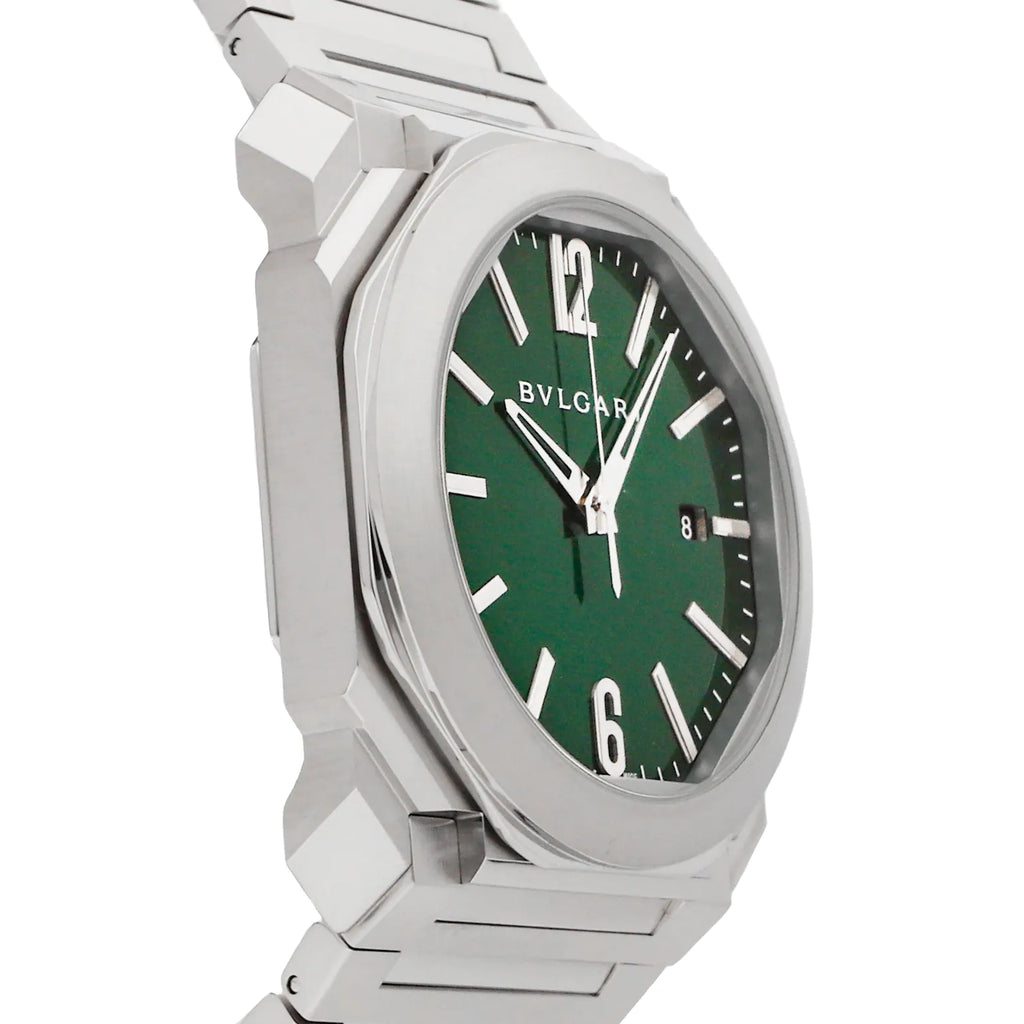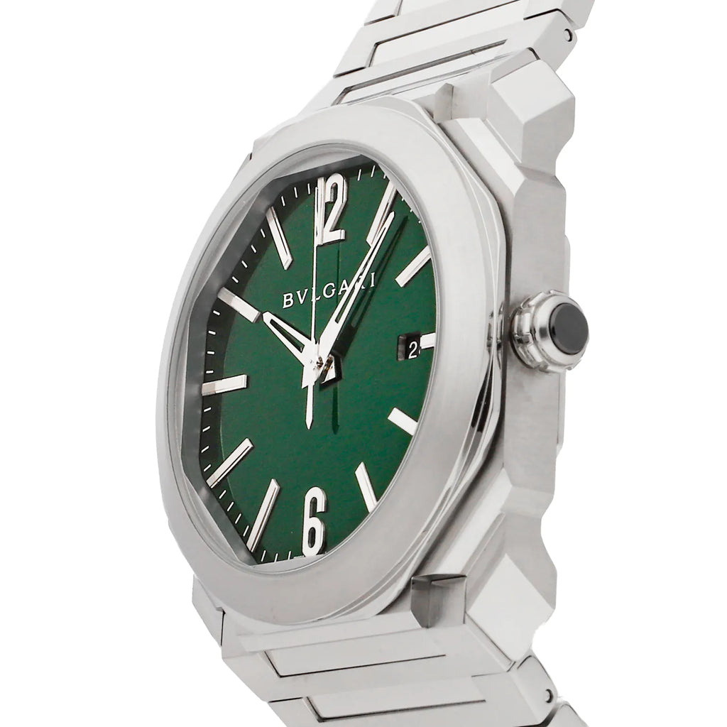 Pre-Owned Bvlgari Octo L'Orginale (102660) self - winding automatic watch, features a 41mm stainless steel case surrounding a green dial on a stainless steel bracelet with folding buckle. Functions include hours, minutes, seconds and date. This watch comes with the original box and warranty. We back this watch with a 2-Year Watchbox warranty! This watch will be ready to ship in 5-7 days!