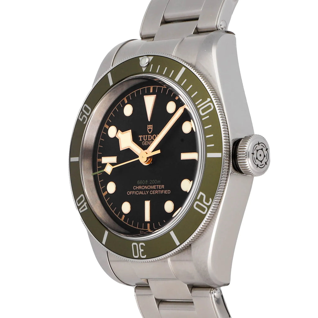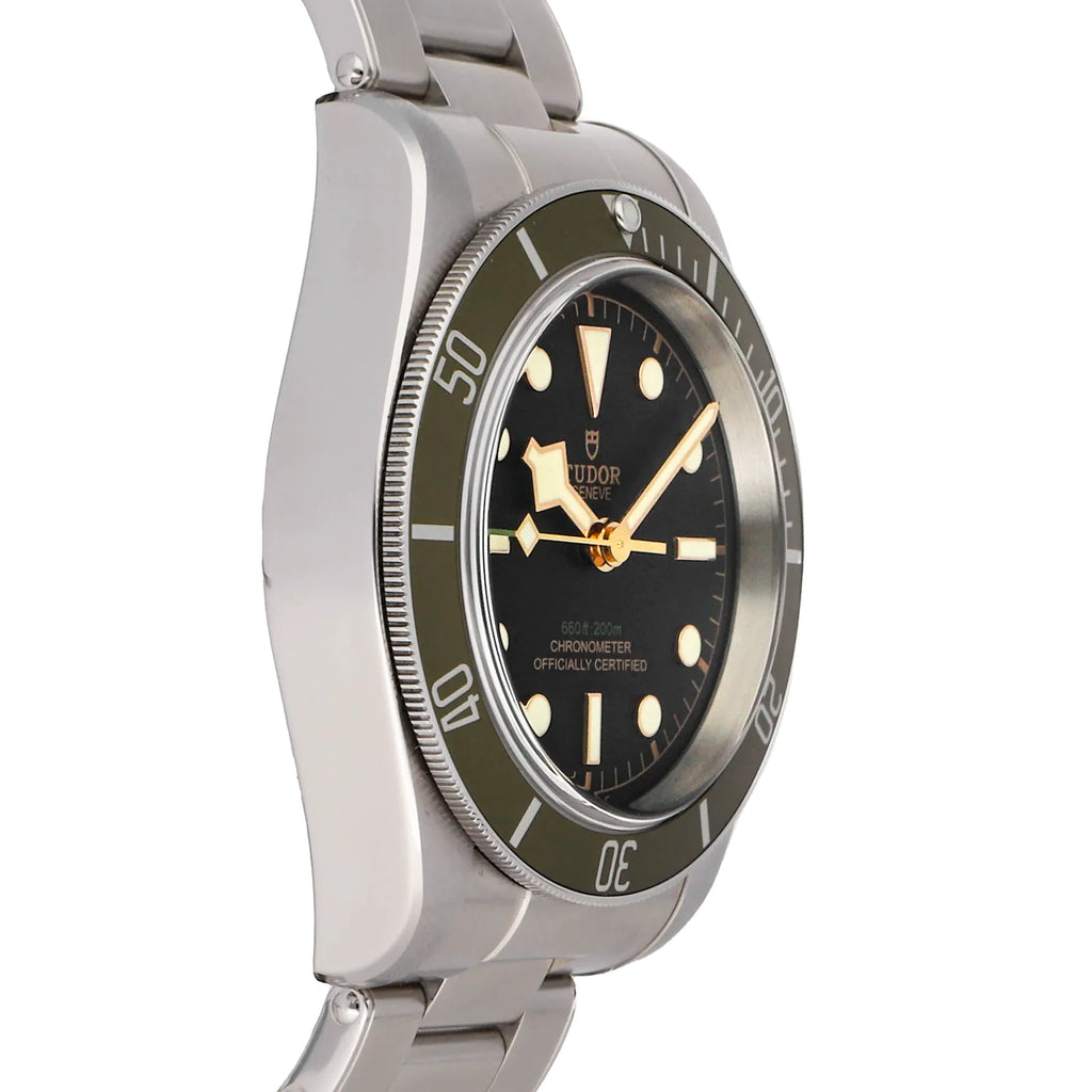 Pre-Owned Tudor Heritage Black Bay Harrods Exclusive (79230G) self - winding automatic watch, features a 41mm stainless steel case surrounding a black dial on a stainless steel bracelet with folding buckle. Functions include hours, minutes and seconds. This watch comes with the original box and warranty. Majority of time remaining on the factory warranty! This watch will be ready to ship in 5-7 days!